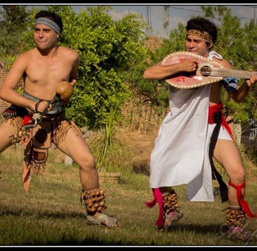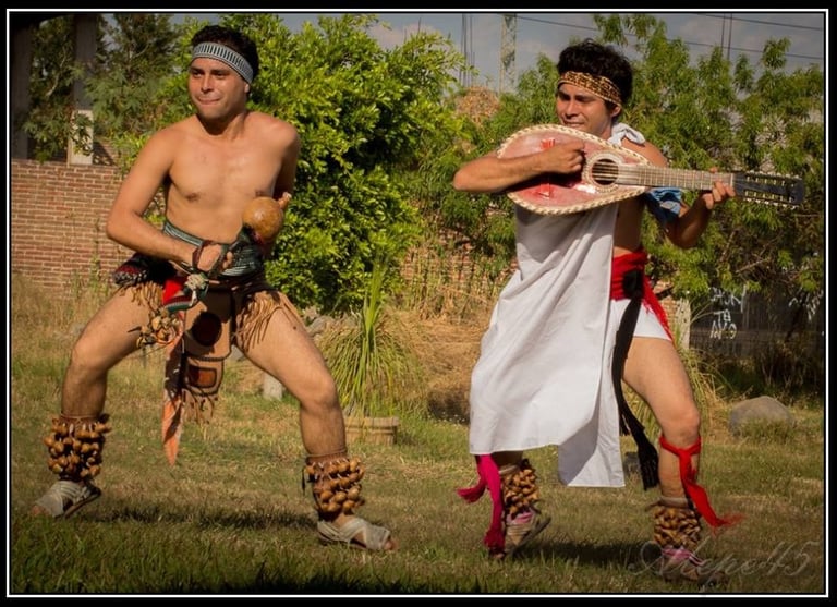 The Dance of Conquest is a little-known variant. Here too a debate exists; some say this dance survived thanks to a syncretism with Jesuit groups. Others say no, that it is a symbiosis of the Dance of Concheros with some endemic groups of authentic Mexicas. These groups are the ones that contain the most abundant and complex practice of the ritual of the Dance. They are hierarchical groups that combine syncretized instruments and elements, such as armadillo shells, with those instruments and elements that are purely indigenous, rejected by the Concheros groups, such as animal skin outfits, the drum or huehuetl, and many symbolic elements of pre-Columbian rituals. It is necessary to clarify a confusion that may arise. These "Of Conquest" groups are also called "Concheros," although their ritual practices are much more complex and complete than the Concheros groups of the branch mentioned previously.