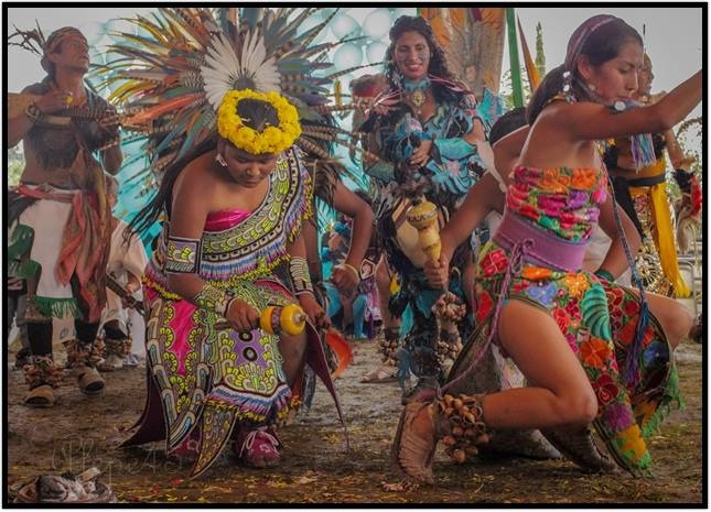 Aztec Dance offers a powerful alternative for relating spiritually with the earth, the creative forces, the elements, and practically all living beings. It is a type of prayer and meditation in motion. It allows one to connect with, invoke, and evoke the elements and primordial forces existing on earth. It is a way of "caressing the earth with the feet." It is a type of offering. Sweat, fatigue, flowers, copal smoke, songs, and dances are offered. It is an act of connection and reciprocity with Mother Earth. The benefits of spiritual growth and strengthening are very noticeable—not just for the dancers, but for the places where they dance. The Dance is used as a means to ask for rain in places where it is scarce, always with positive results. The Dance is also a spiritual means to perform important life acts, such as marriages, baptisms, and the farewell of beings who have passed away.